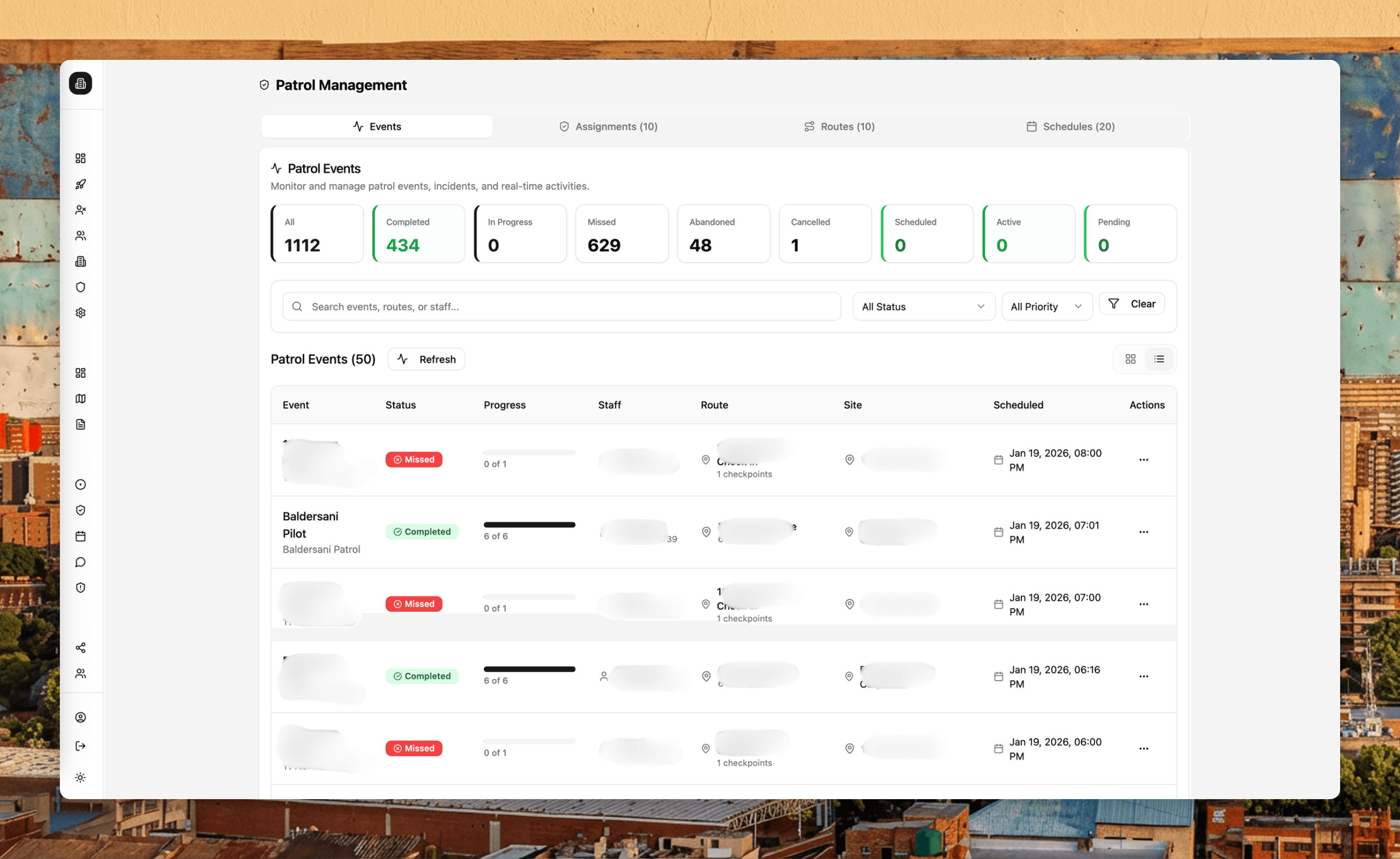 See all patrol activity in real time through a single dashboard. Track completion status, missed checkpoints, and route progress as they happen, with full visibility into patrol history and performance.